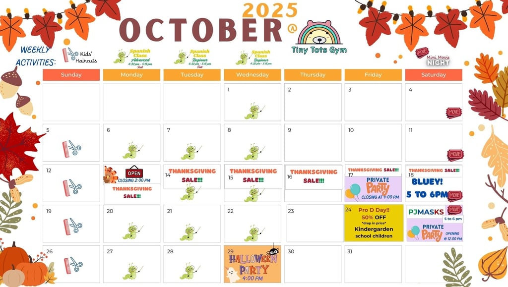 Book your spot for our next event: Tiny Tots Gym Halloween Party!