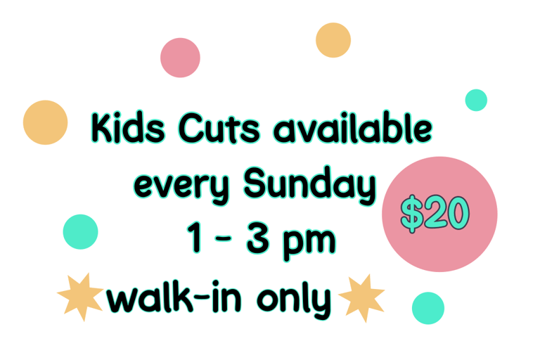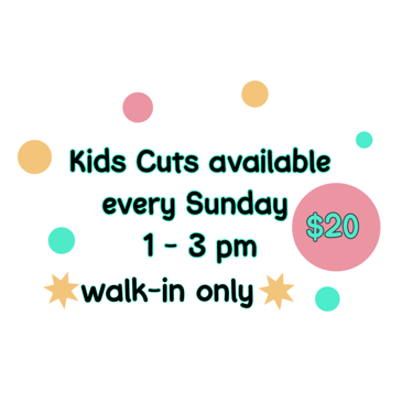 Haircuts for kids, every Sunday 1 - 3 pm. FCFS