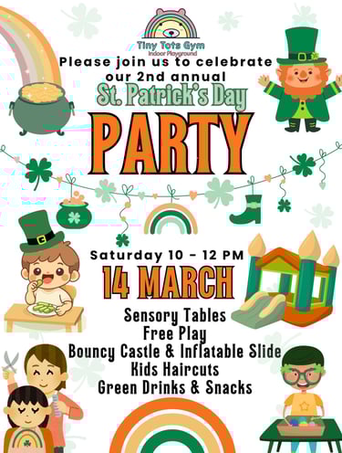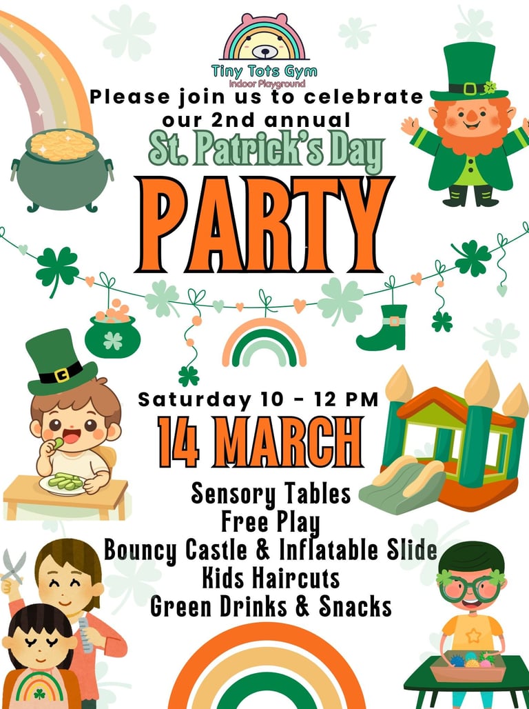 We’re celebrating all things green at our St. Patrick’s Day Party at Tiny Tots Gym Indoor Playground — and you’re invited!